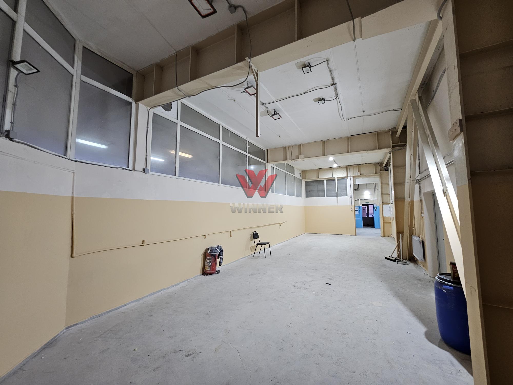 В складском блоке высота потолка 3.9м, есть огороженные комнаты из пластиковых перегородок.